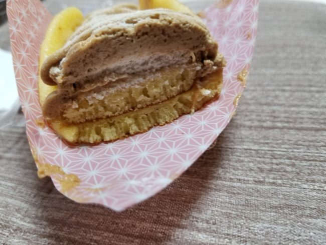 どら焼きの生地に包まれているモンブランクリームが