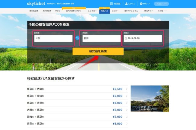 簡単検索で大阪ー名古屋便が予約できる【格安高速バスのスカイチケット高速バス】