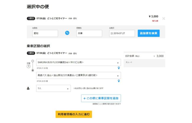 夜行バスで大阪ー名古屋便を簡単に見つけられて