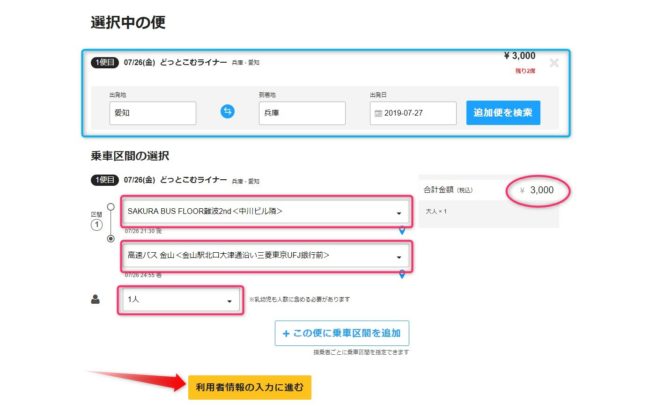 まだ空きがある夜行バスがあればすぐに表示されます。