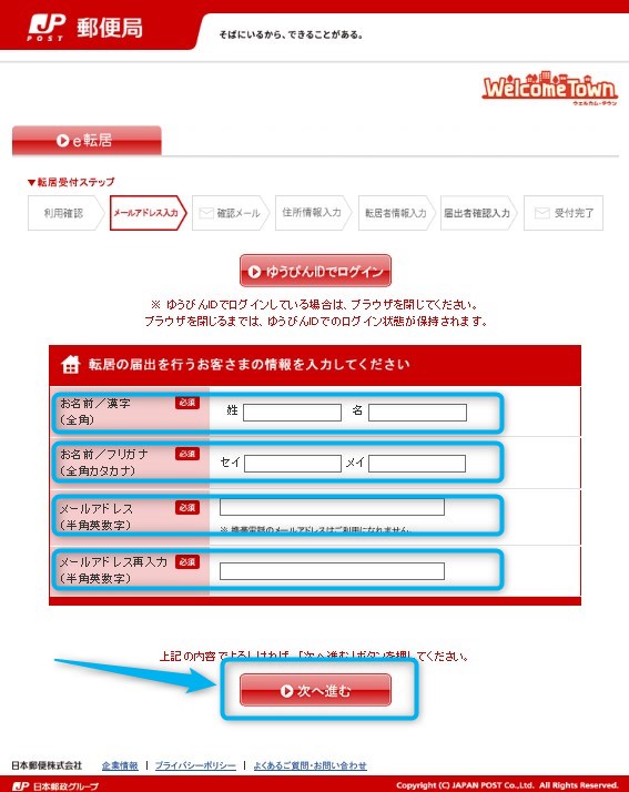 郵便局のe転居へアクセスします。