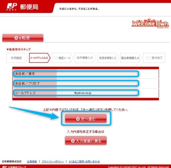 を記入して下の【次へ進む】をクリックします。