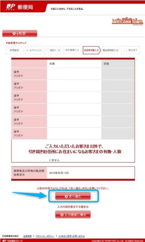 名前を確認したら下の【次へ進む】をクリックします。