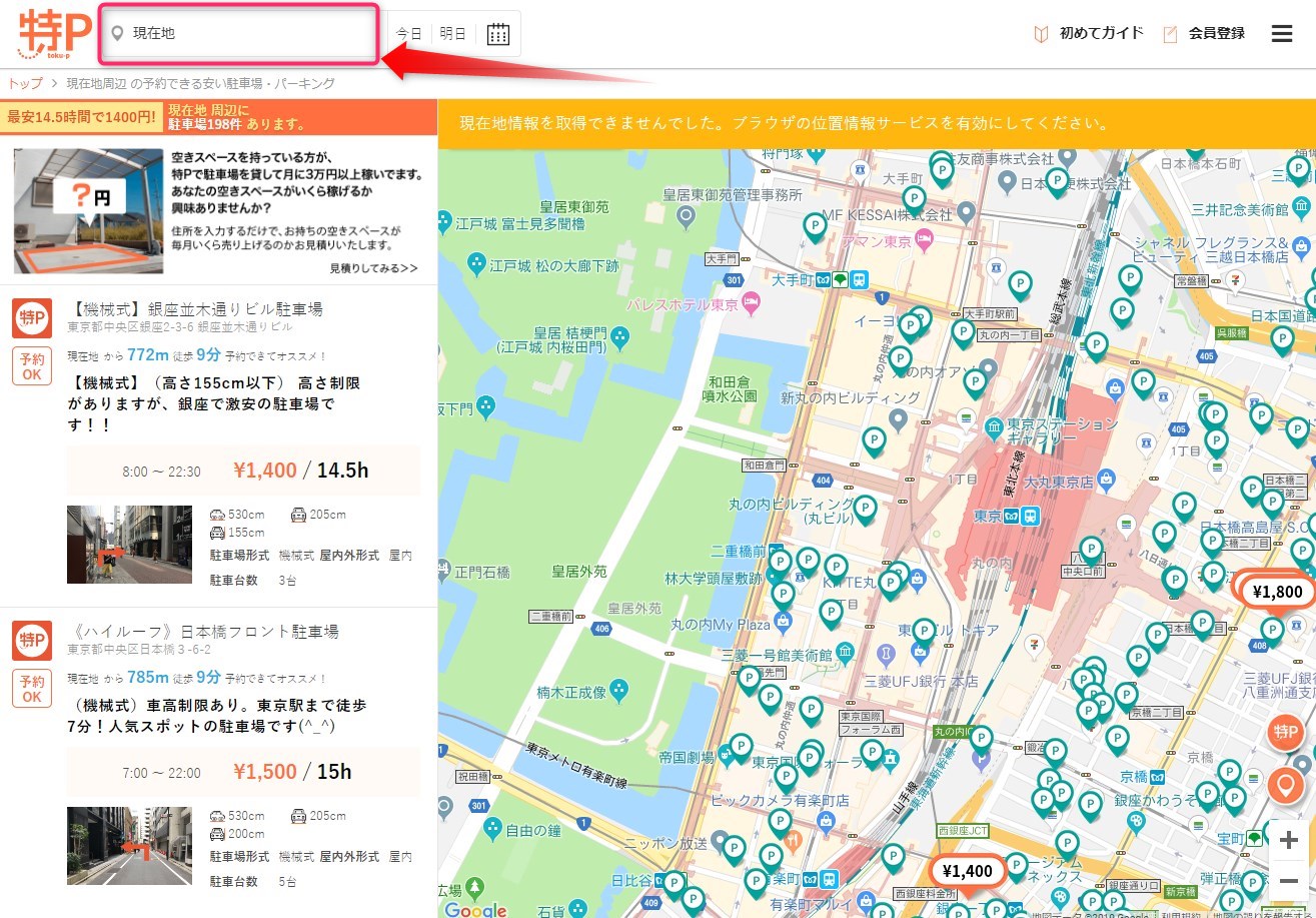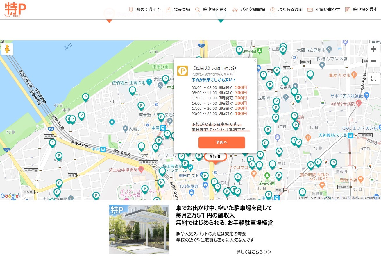 「特P」は会員登録するだけの月会費なども必要ない駐車場検索・予約サイトです。