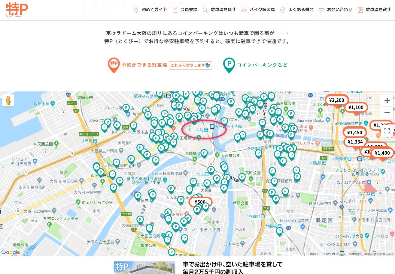 特Pで梅田芸術劇場や京セラドームの近くの駐車場探せる?