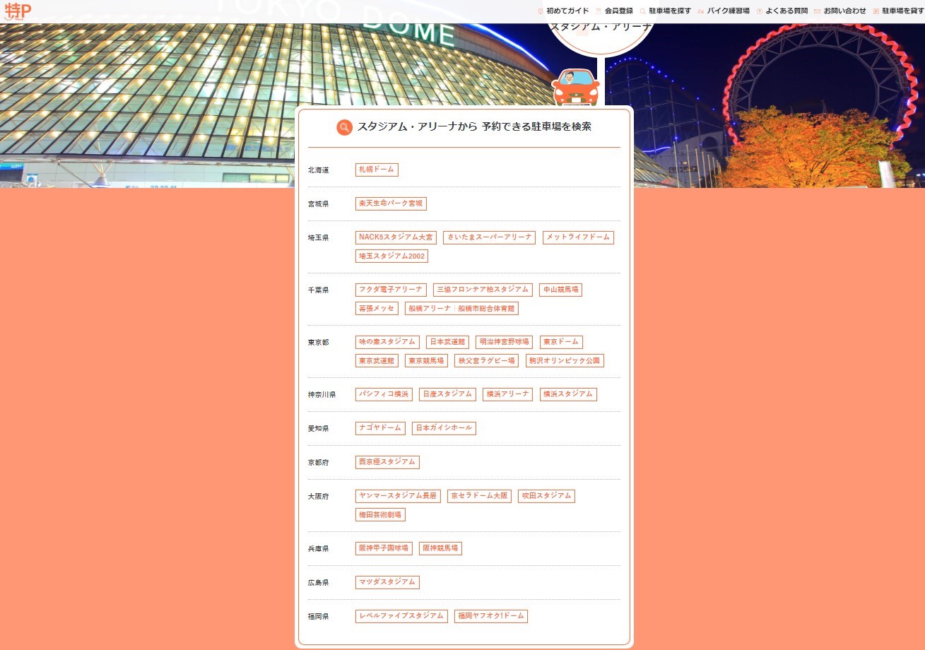 人気スポット周辺で駐車場検索や予約が出来ます。